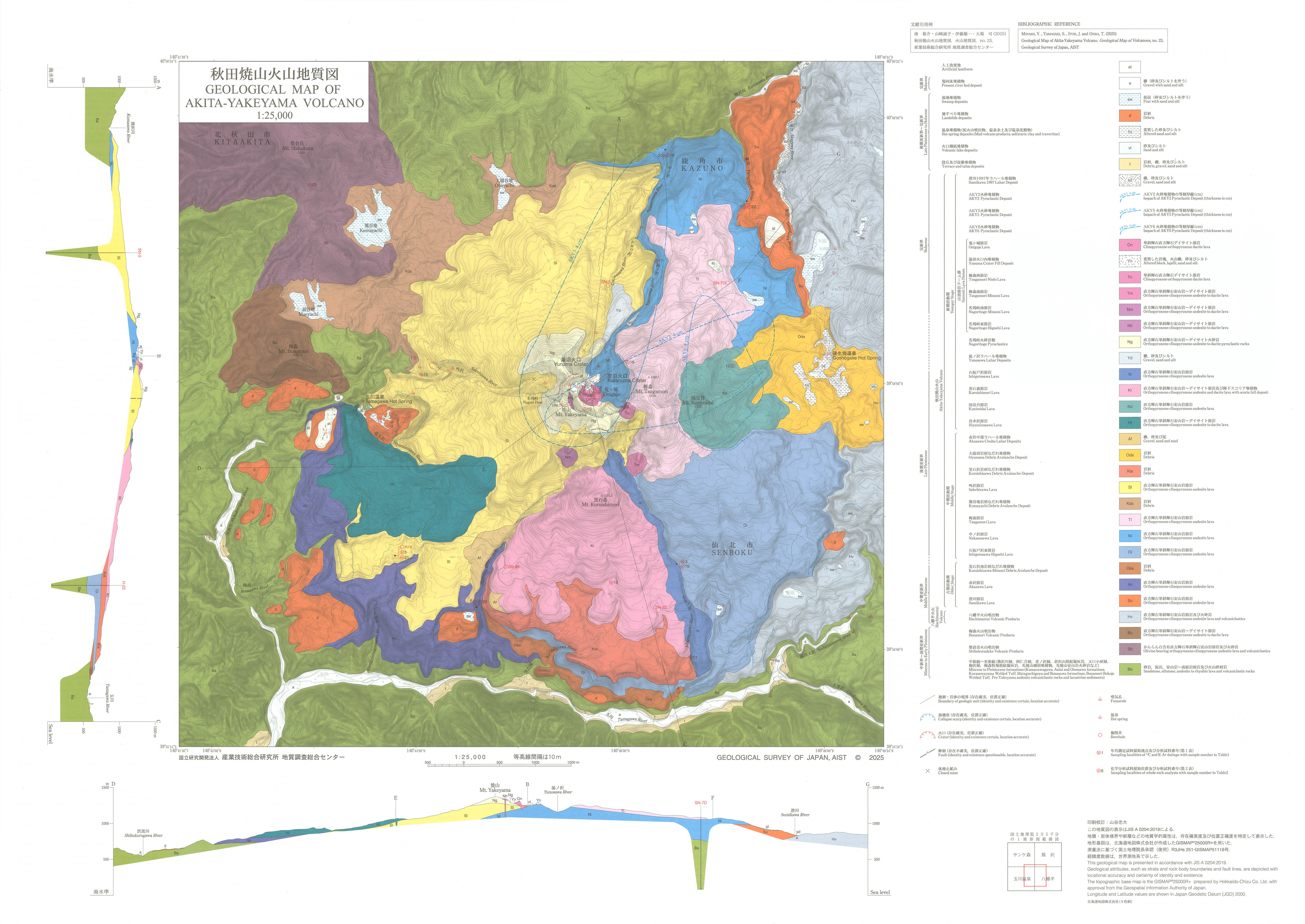 Geological Map of Volcanoes 23 Akita-Yakeyama Volcano 1:25,000 Pub : 2025 Explanatory text on the reverse side Price : ¥1,210 |