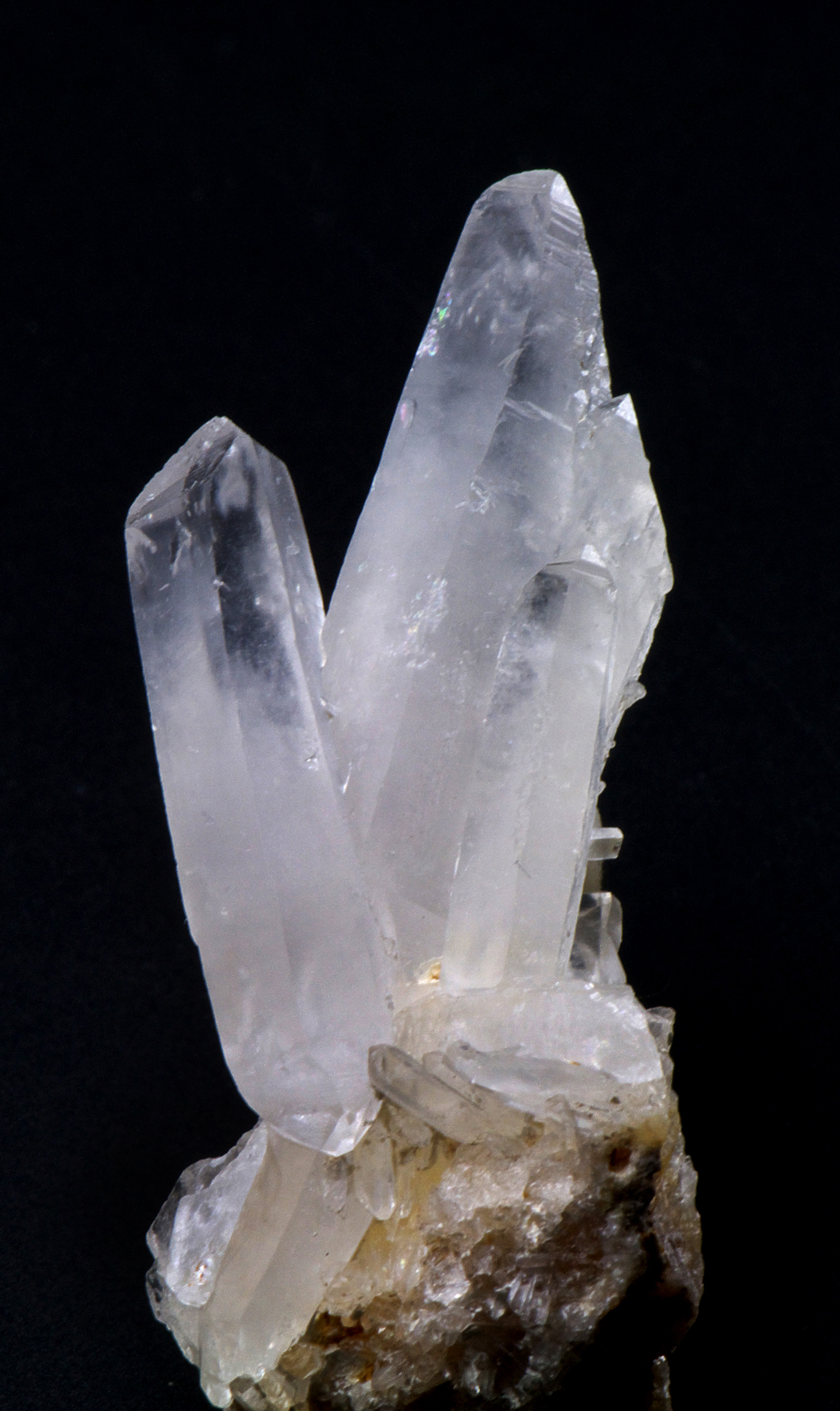 とても形の良い結晶で、水晶が三方晶系である事もよく分かる。ほとんど無色透明であるために、