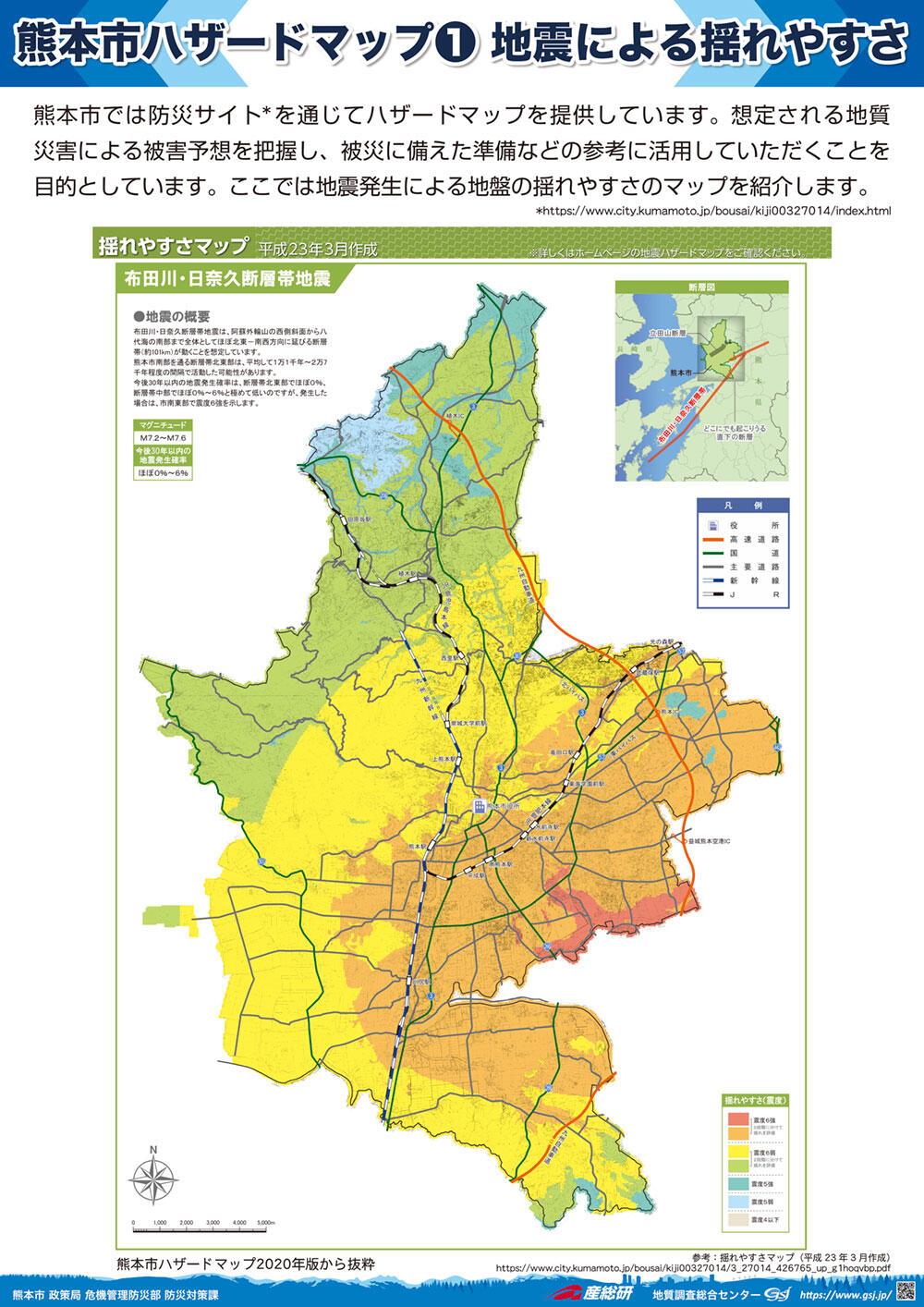 熊本市ハザードマップ① 地震による揺れやすさ (ダウンロード:12.4 MB) |